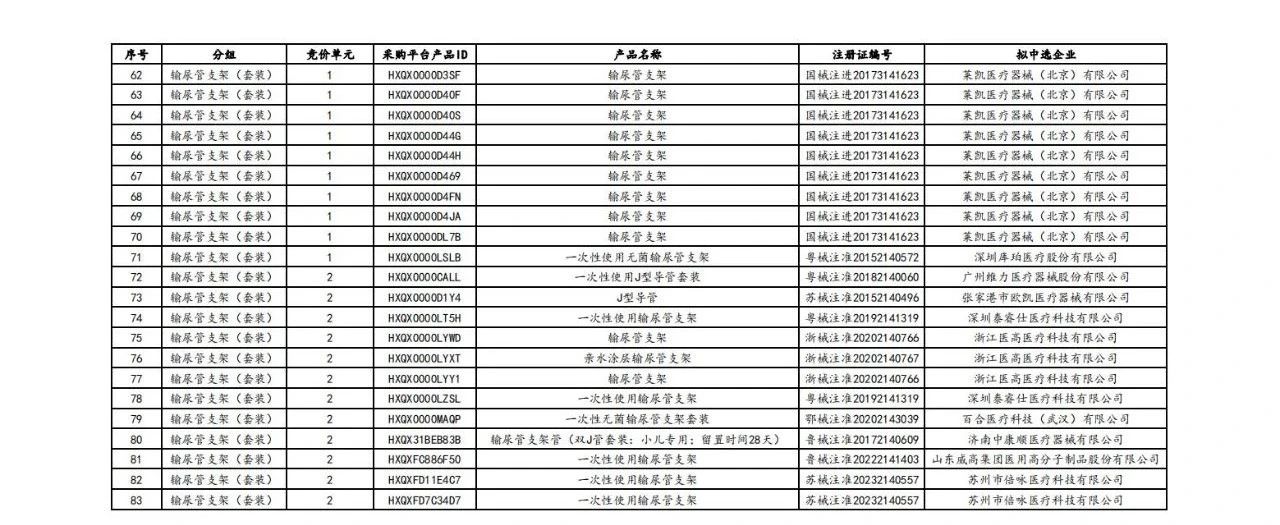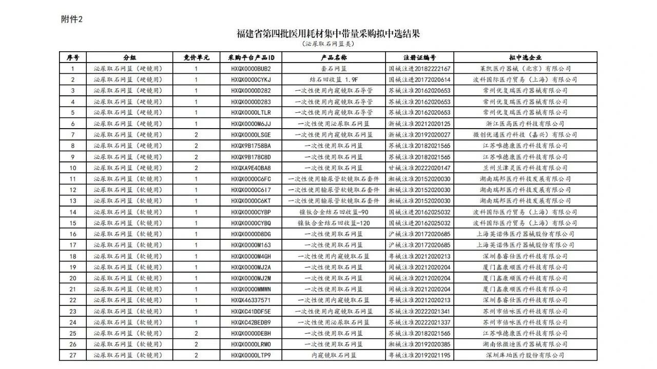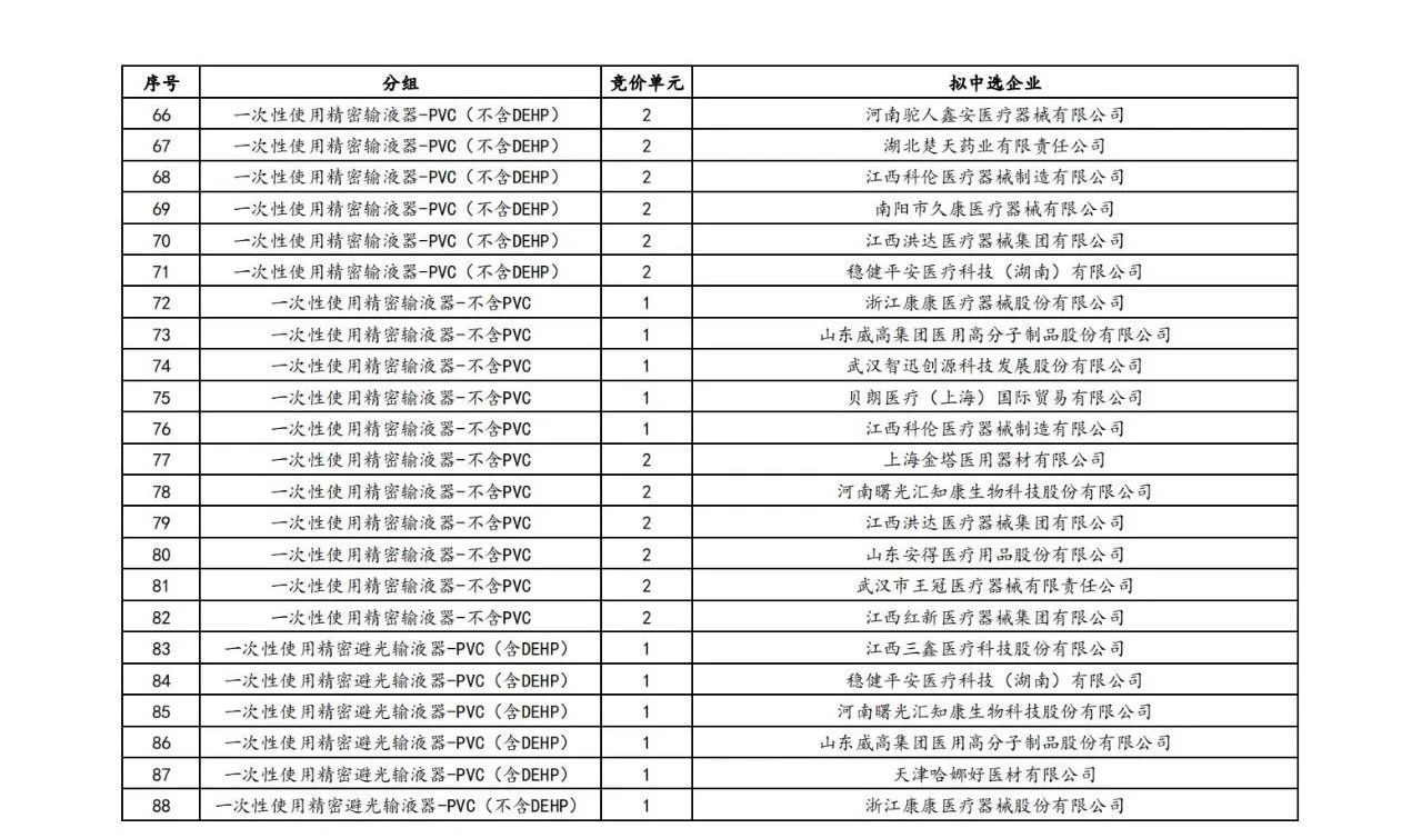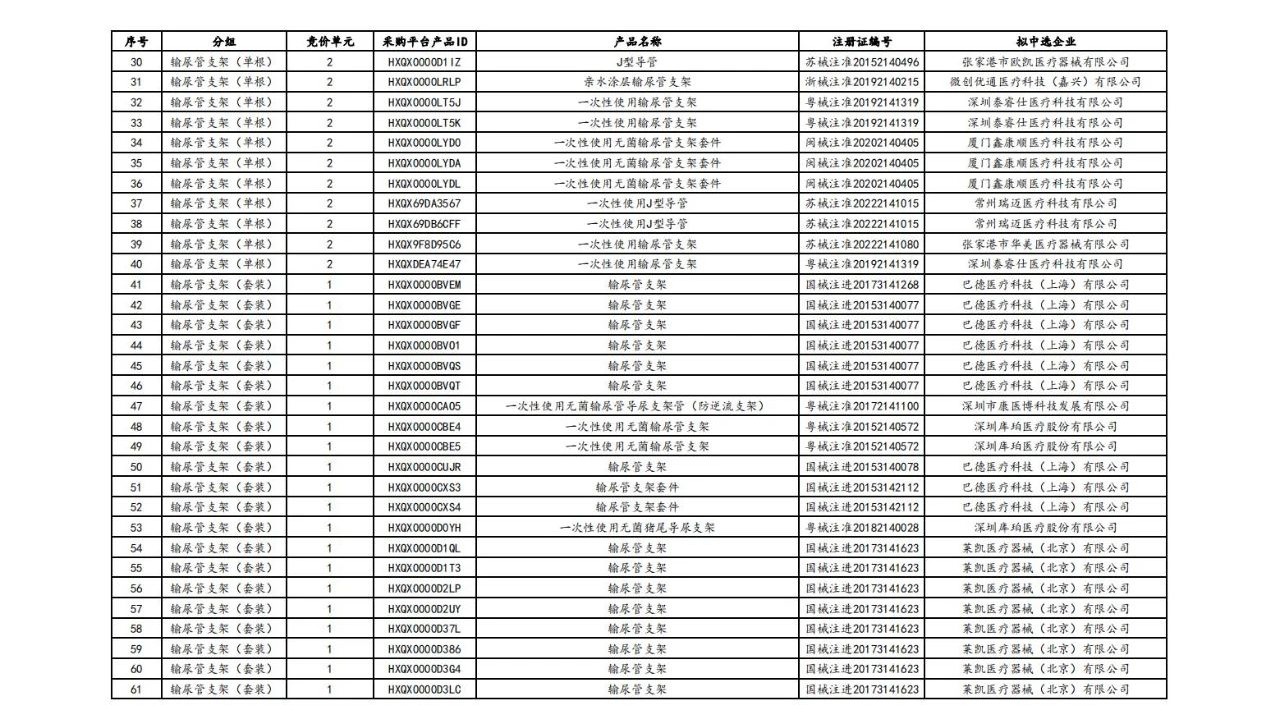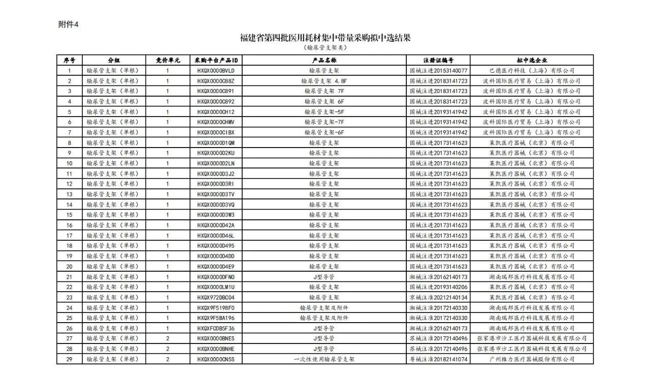 最新公告披露了上述耗材的擬中選結果,部分名單如下(完整見文末):