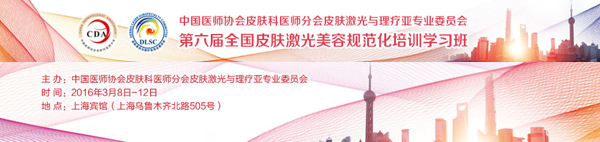 由中國醫師協會皮膚科醫師分會(CDA)皮膚激光與理療亞專業委員會主辦的“第六屆全國皮膚激光美容規范化培訓學習班”將于2016年3月8日-12日在上海舉行。誠邀全國各地的皮膚科醫師參加!