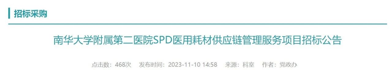 近日,南華大學附屬第二醫院發布SPD醫用耗材供應鏈管理服務項目招標公告。