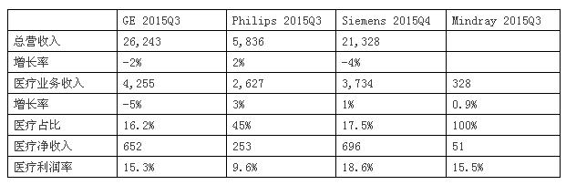 GE于10月16日公布了Q3的業(yè)績,而飛利浦則于10月26日公布了Q3的業(yè)績。西門子的財年比較特別,是從10月1日起至9月30日結束,所以西門子于11月12日公布的是Q4的業(yè)績。邁瑞Q3的業(yè)績剛剛在11月13日公布,故筆者也把它放在一起比較,以方便朋友們閱讀。希望通過分析比較,對大家進一步認識GPS三巨頭有幫助。