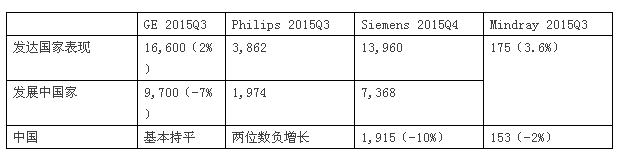 表二:GPS和邁瑞區(qū)域表現(xiàn)對比(GE、邁瑞的單位是百萬美金;另外兩家是百萬歐元)