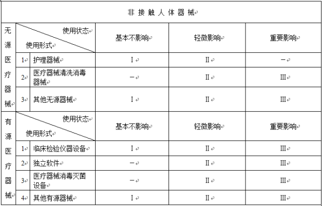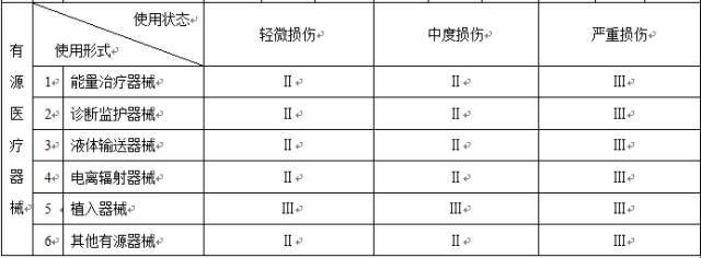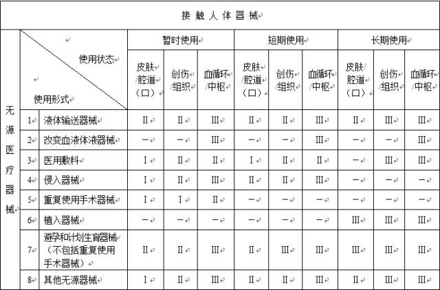 注:1.本表中“Ⅰ”、“Ⅱ”、“Ⅲ”分別代表第一類、第二類、第三類醫(yī)療器械;
