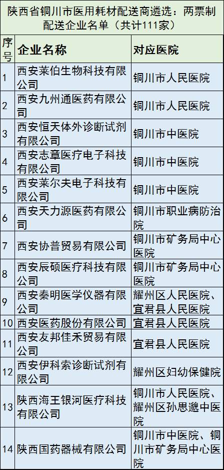 銅川市耗材兩票制配送商大篩選 僅71企業(yè)幸存