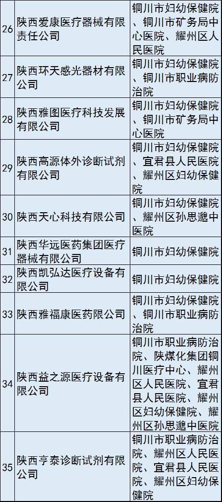 公示顯示,拿到銅川市耗材“兩票制”配送資格的共有71家醫(yī)療器械企業(yè),服務(wù)對(duì)象覆蓋該市12家公立醫(yī)療衛(wèi)生機(jī)構(gòu)。