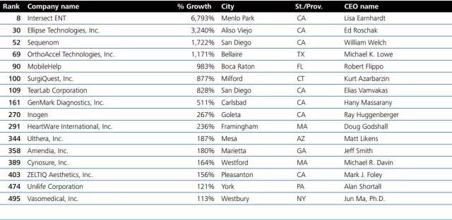 和往年一樣,快到11月底的時候,德勤公布了2015年北美區高科技成長企業500強名單,企業占比最多的依然來自軟件開發行業,較少的為儀器儀表行業。動脈網第一時間為大家梳理了其中行業為醫療器械類的公司,共有十六家。