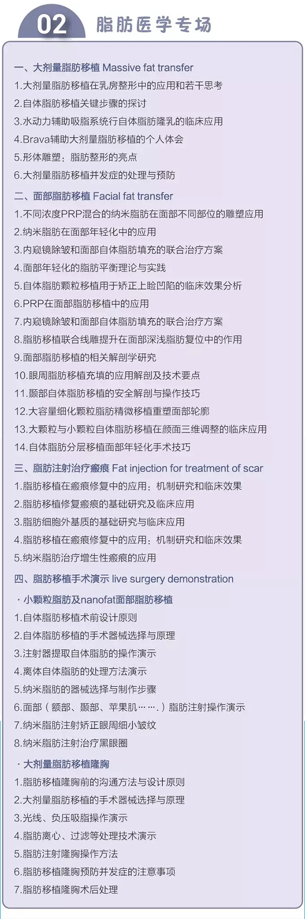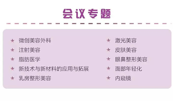 主辦單位:中國整形美容協(xié)會微創(chuàng)與皮膚整形美容分會 · 脂肪醫(yī)學(xué)分會新技術(shù)與新材料分會 · 乳房整形分會激光美容分會 · 皮膚美容分會眼整形美容分會 · 面部年輕化分會鼻整形美容分會 · 內(nèi)窺鏡整形外科分會