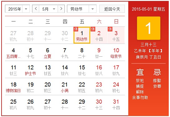 2015年北京華康普美科技有限公司,“五一勞動節”假期為:5月1日(星期五)至5月3日(星期日)共放假3天,5月4日(星期一)正常上班。