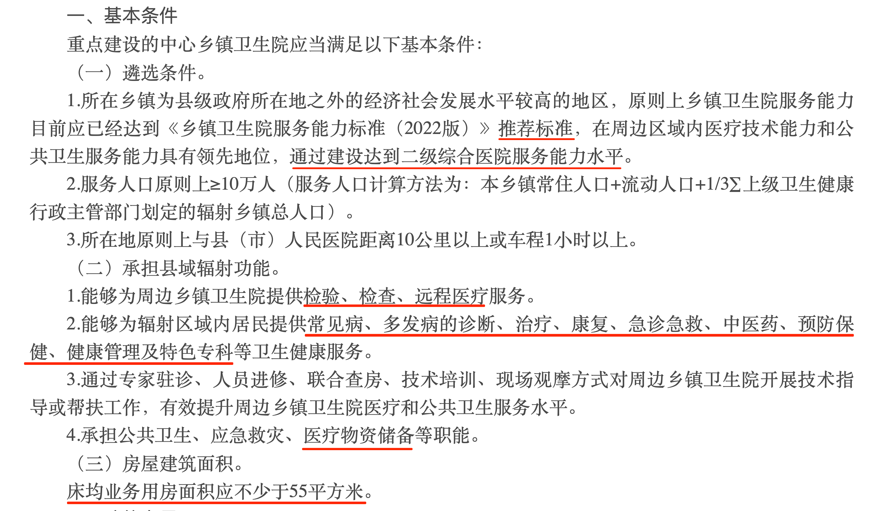 重點建設(shè)的中心鄉(xiāng)鎮(zhèn)衛(wèi)生院應(yīng)當滿足這些基本條件: