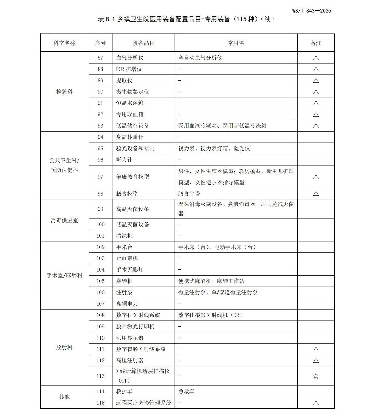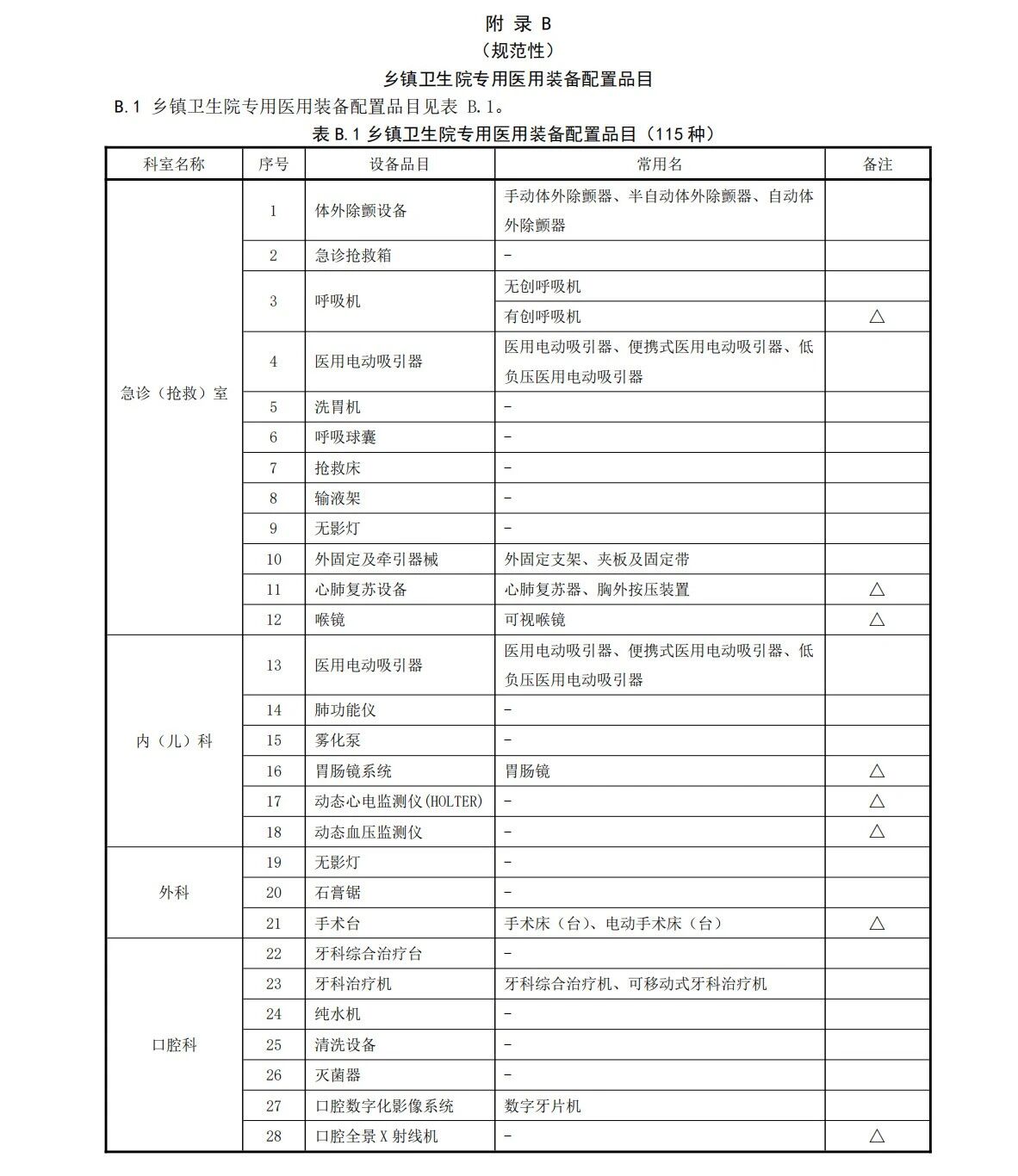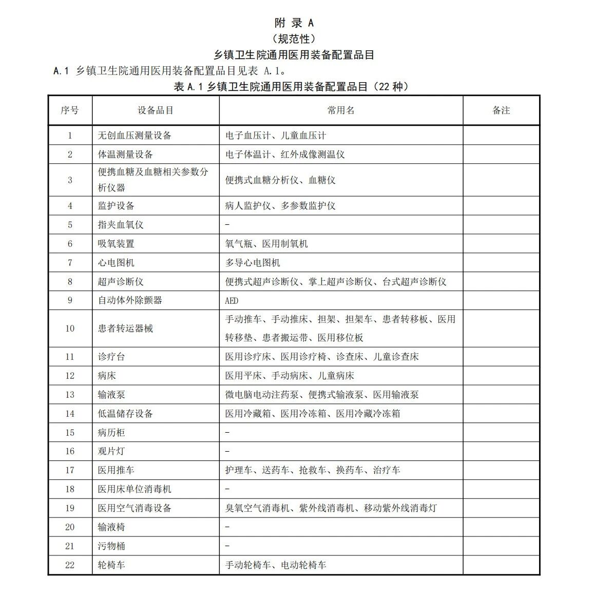 鄉(xiāng)鎮(zhèn)衛(wèi)生院設(shè)備配置名單迎來(lái)更新。