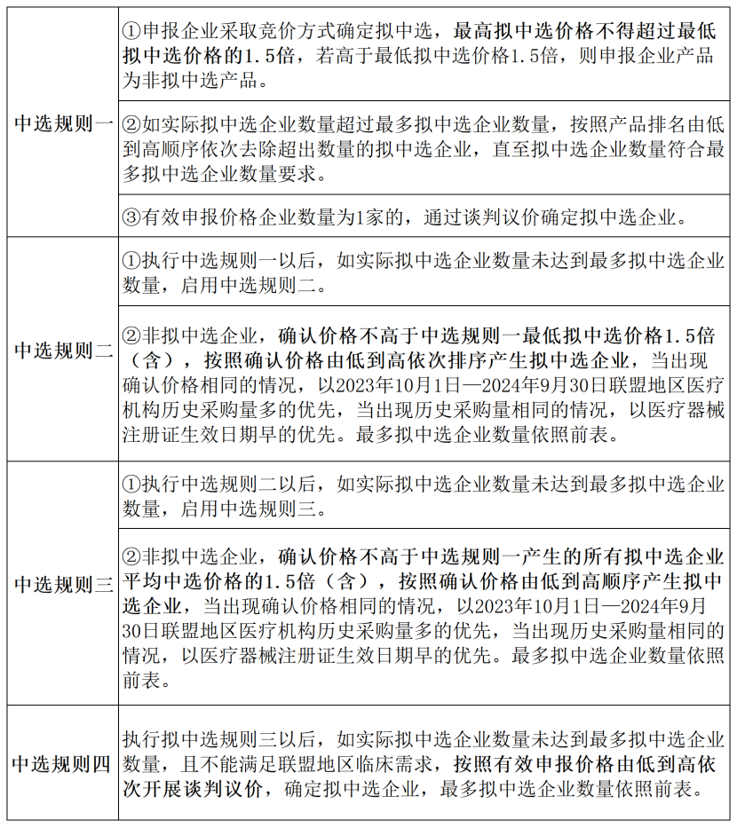 擬中選規則方面,按有效申報價格由低到高的順序確定排名,最多擬中選企業數量詳見下表。