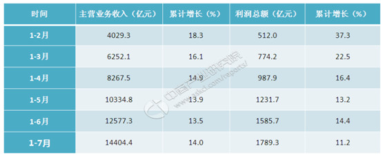 醫藥工業運行數據顯示,2018年1-7月,我國醫藥行業主營業務收入達14404.4億元,累計同比增長14%,比1-6月上升了0.5個百分點,行業實現利潤總額達1789.3億元,累計同比增長11.2%,比1-6月下降了3.2個百分點。