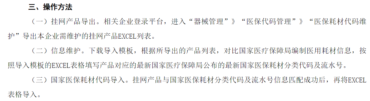 此次通知中并未給出具體的截止時(shí)間,但明確提出,已在平臺中掛網(wǎng)的醫(yī)用耗材,企業(yè)應(yīng)及時(shí)做好醫(yī)保代碼維護(hù)工作。如后續(xù)國家醫(yī)療保障局公示新批次國家醫(yī)保醫(yī)用耗材分類與代碼數(shù)據(jù)信息,此項(xiàng)工作繼續(xù)進(jìn)行。