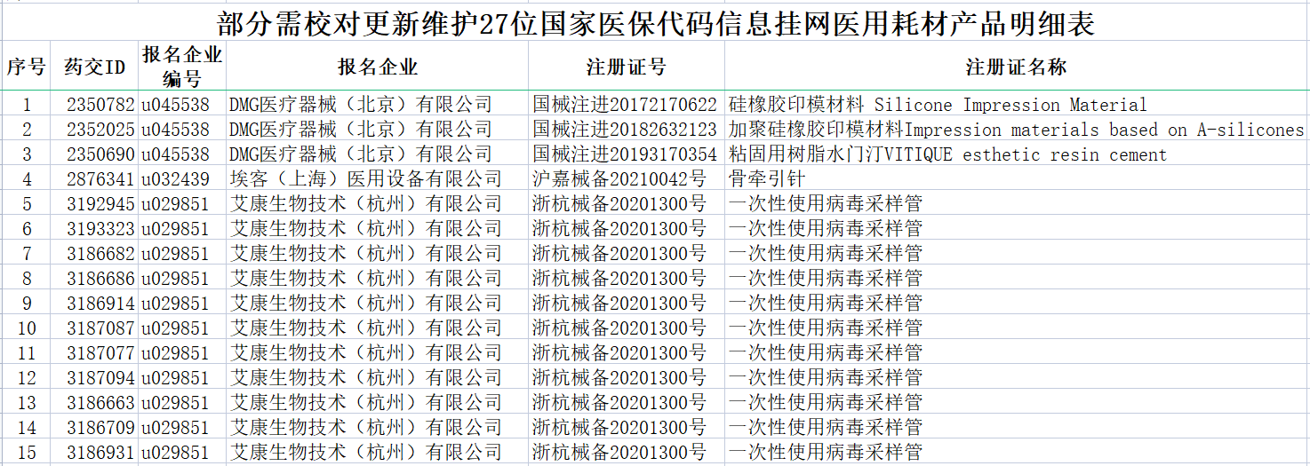 《通知》指出,已在省平臺醫用耗材交易系統維護國家醫保代碼的掛網醫用耗材請按照國家醫保編碼信息平臺最新公布或審核通過的國家醫保代碼自行校對,如有更新的應及時進行更新。