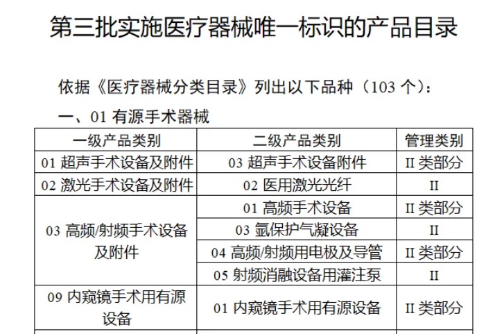 去年2月,國家藥監局、國家衛健委、國家醫保局發布《關于做好第三批實施醫療器械唯一標識工作的公告》。
