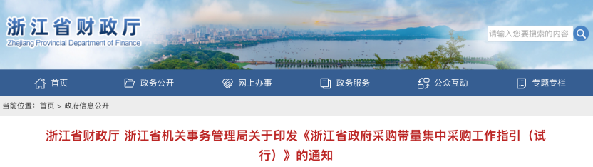 近日,浙江財政廳發(fā)布《浙江省財政廳浙江省機關(guān)事務(wù)管理局關(guān)于印發(fā)<浙江省政府采購帶量集中采購工作指引(試行)>的通知》,指引自2025年7月1日起施行。