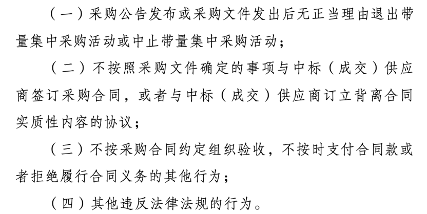 各采購單位在帶量集中采購活動中,不得有下列行為: