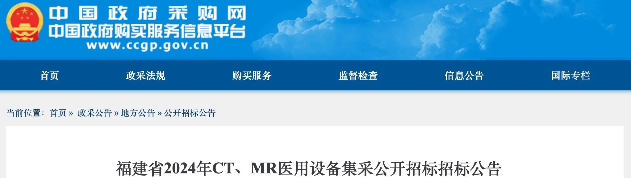 近日,中國政府采購網(wǎng)發(fā)布《福建省2024年CT、MR醫(yī)用設(shè)備集采公開招標(biāo)招標(biāo)公告》(簡稱《公告》),預(yù)算總計(jì)8.97億元人民幣,總數(shù)量達(dá)92臺(tái)。