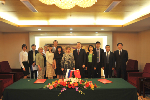 2012年9月27日上午,尹力局長會見了來訪的俄羅斯聯邦衛生與社會發展監督局代理局長捷利諾娃(Elena Telnova)女士一行,雙方簡要回顧了以往的合作情況,就進一步加強在包括活性藥物成分(API)在內的監管信息交流、藥品快檢技術領域的合作達成共識,并續簽了雙邊合作諒解備忘錄。國際合作司、藥品注冊司、醫療器械監管司和稽查局主要負責人陪同參加了會見及續簽儀式。