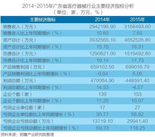 2015年,廣東省醫療器械行業的銷售收入和產品銷售利潤較上年均有所增長,利潤總額有所下降。根據國家統計局統計,2015年廣東省醫療器械行業規模以上企業數量有153家;實現銷售收入316.85億元,同比增長7.69%;實現產品銷售利潤69.90億元,同比增長6.06%;利潤總額為44.86億元,同比下降4.57%。(具體數據指標詳見下表。)