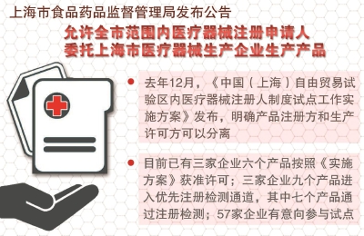 醫(yī)療器械研發(fā)生產(chǎn)的醫(yī)療器械注冊證和生產(chǎn)許可證的“證照分離”,自去年12月在上海自貿(mào)試驗(yàn)區(qū)成功試點(diǎn),如今將擴(kuò)大至全市。昨天,上海市食品藥品監(jiān)督管理局發(fā)布《關(guān)于將本市醫(yī)療器械注冊人制度改革試點(diǎn)擴(kuò)大至全市范圍實(shí)施的公告》,允許全市范圍內(nèi)醫(yī)療器械注冊申請人委托上海市醫(yī)療器械生產(chǎn)企業(yè)生產(chǎn)產(chǎn)品。