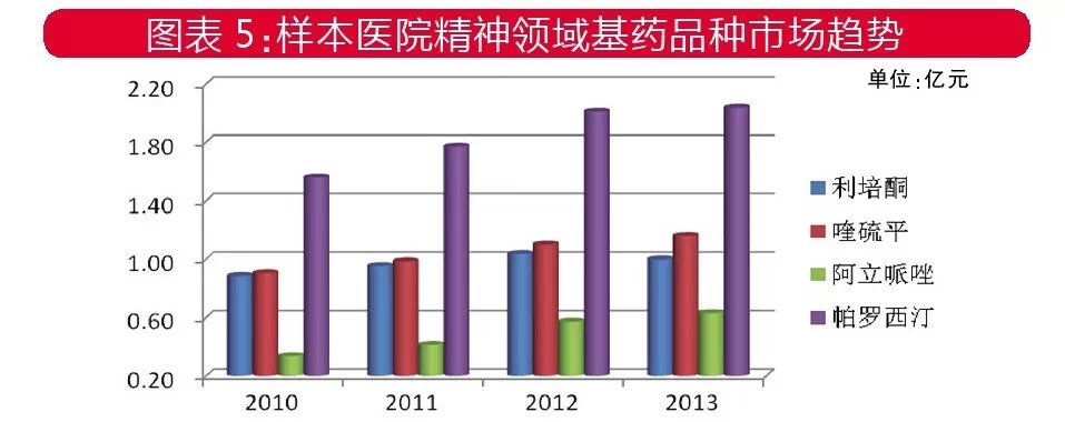 精神領域藥物是另一類業內普遍認為將有較快發展的用藥類別。隨著精神衛生法的實施,社會對精神疾病患者的關注度日益提高,疾病的診斷和治療也逐步規范,加之“轉型期”導致的精神相關疾病的患病率提高,這些因素都將推動精神領域藥物市場成為未來發展的熱點。