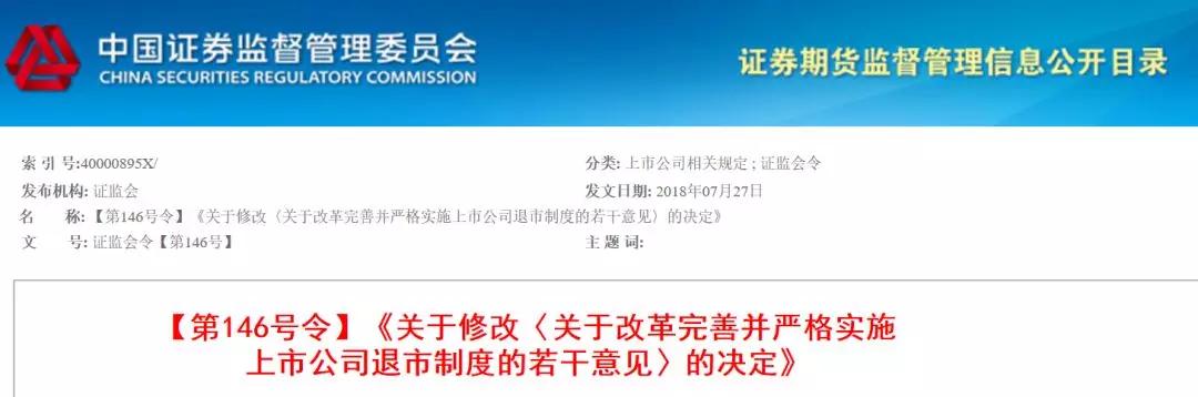 這個《決定》自2018 年7 月27 日起施行。長生生物觸碰了退市紅線。