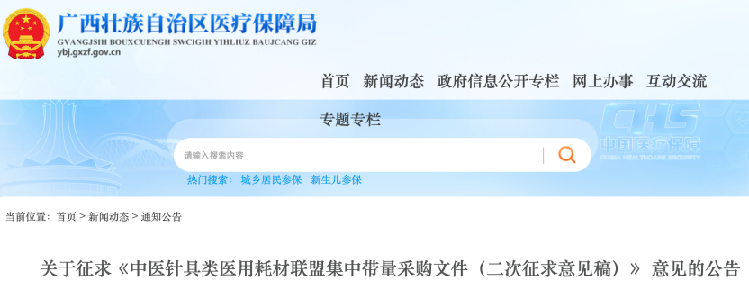 11月24日,廣西醫(yī)保局發(fā)布《關(guān)于征求<中醫(yī)針具類醫(yī)用耗材聯(lián)盟集中帶量采購文件(二次征求意見稿)> 意見的公告》,其中在前一版征求意見稿的基礎(chǔ)上進(jìn)行了部分調(diào)整。