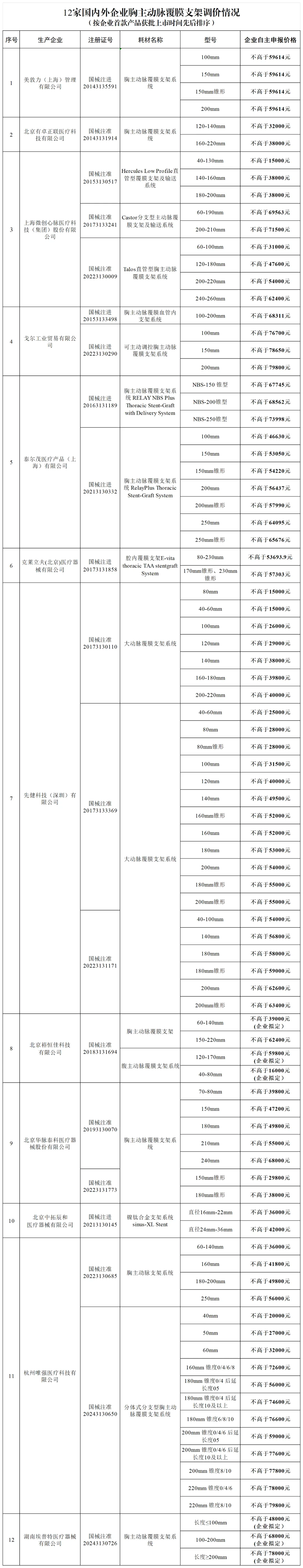 除心脈醫療外,11家國內外企業集體也重新制定了胸主動脈覆膜支架產品價格,整體價格明顯下調(具體見文末)。