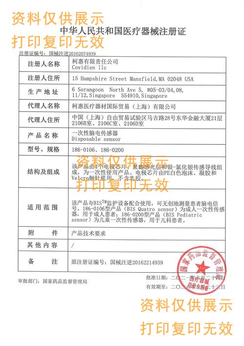 BIS成人傳感器:一次性使用,含4個預膠化電極芯片;BIS兒童傳感器:一次性使用,含4個預膠化電極芯片;