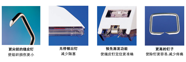 得益于鋒利的鋼釘,威克皮膚縫合器操作簡(jiǎn)單快速,組織創(chuàng)傷小,愈合快。并且,由于鋼釘?shù)目v向長(zhǎng)度,拆釘過程也會(huì)疼痛感更小。